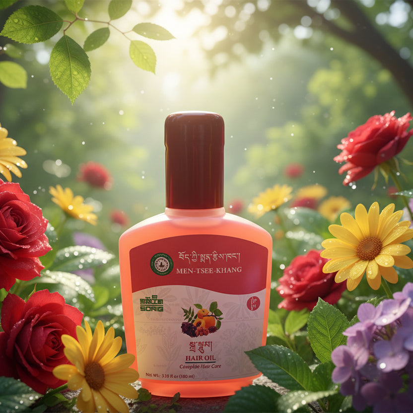 L'huile thérapeutique pour les cheveux SORIG TA-NUUM (Bouteille 100ml) est préparée avec des fruits et fleurs naturels et des plantes médicinales selon la science tibétaine de l'équilibre du corps et de l'esprit.