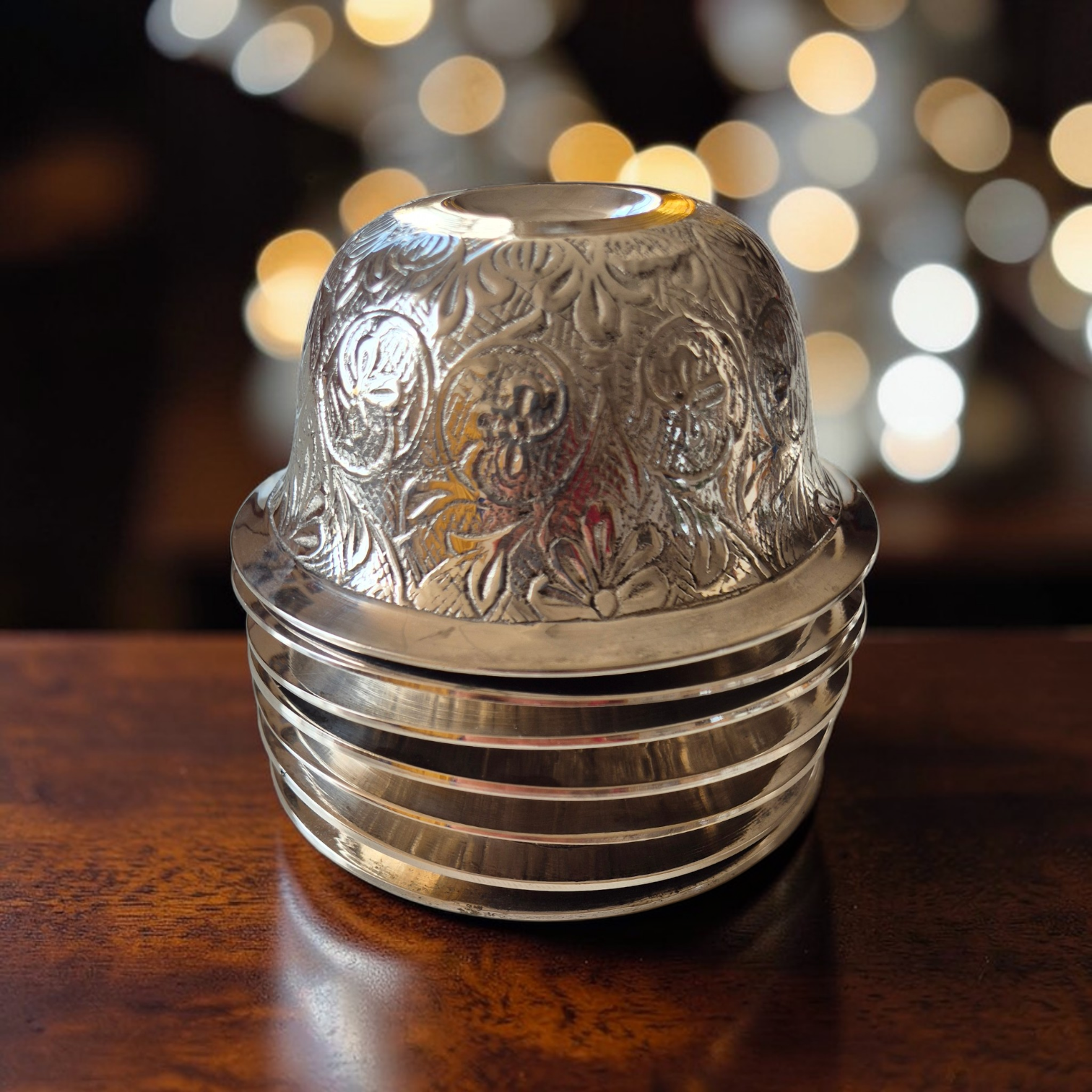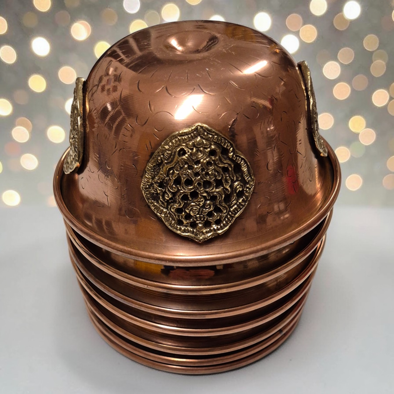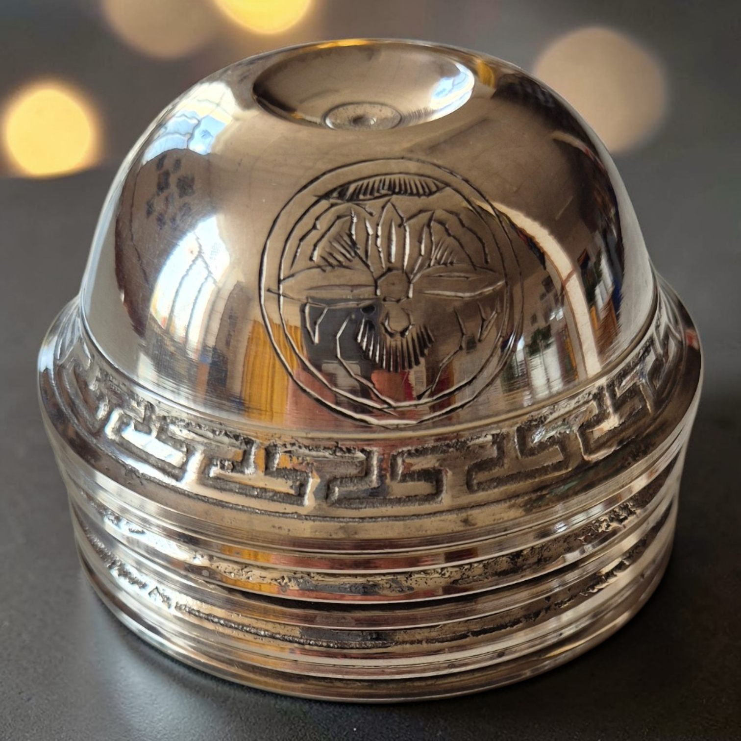 Voici 7 bols à offrandes tibétains pour votre autel. Ces bols toujours au nombre de sept, sont destinés à recevoir l'eau présentée en offrande. Ils sont en argent massif ou en cuivre. Les bols remplis d'eau devront être changé chaque jour, tandis que le bol de riz pourra être changé uniquement à la pleine lune, par exemple. L'offrande est un geste d'humilité, de générosité et de confiance qui permet l'accumulation de mérites positifs.