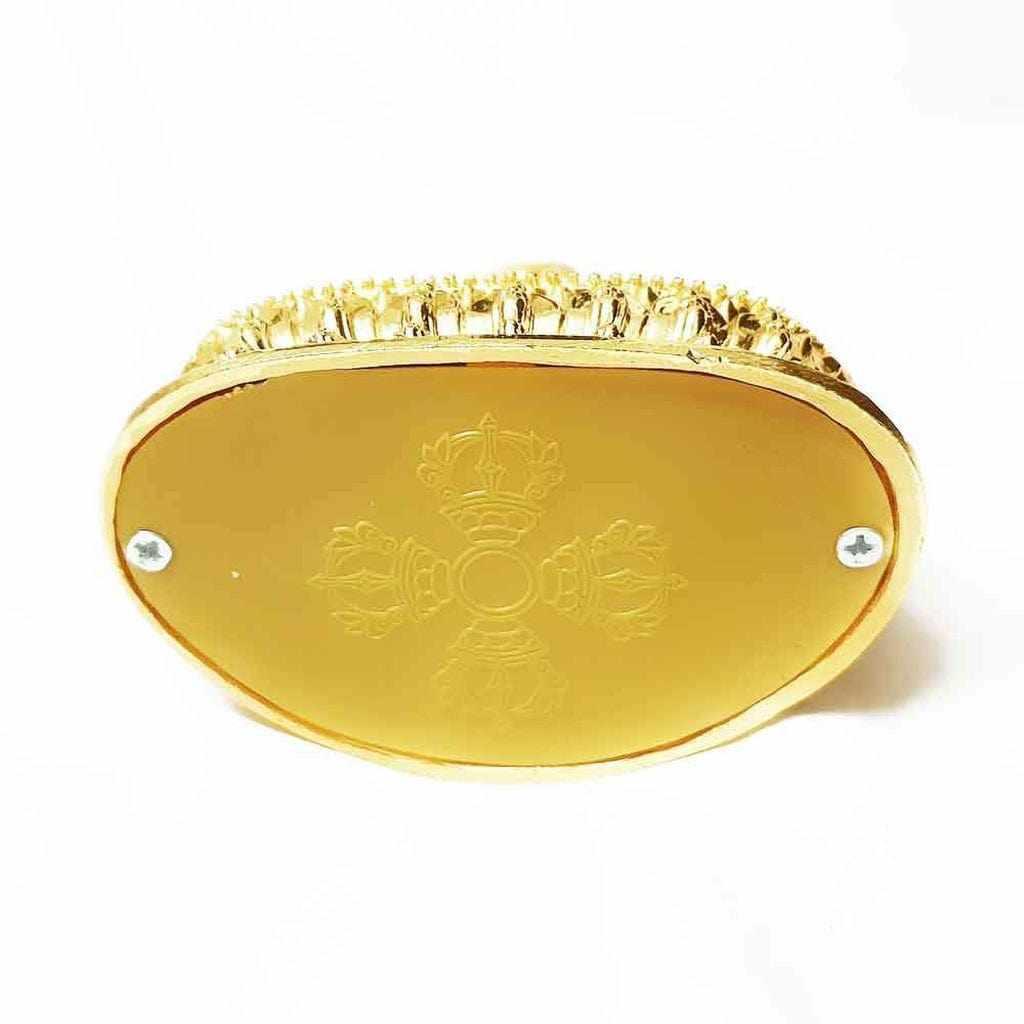 Cette statue dorée 14cm du Bouddha Vajrasattva - en alliage de différents métaux - est finement travaillée et décorée. La méditation de Vajrasattva, ou de Dorje Sempa (en tibétain), vise particulièrement à purifier notre esprit de l’obscurité et de la confusion, tout comme de la négativité et des empreintes karmiques qui en résultent.